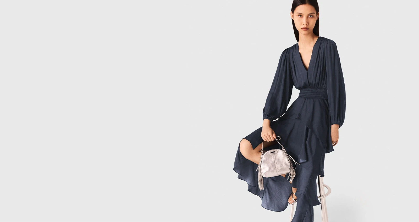La ragazza Maje attraversa Parigi, libera e luminosa. Rievocando il mito degli anni del Palace, tra velluto, tulle e bagliori scintillanti, brilla per eleganza e cattura la luce.